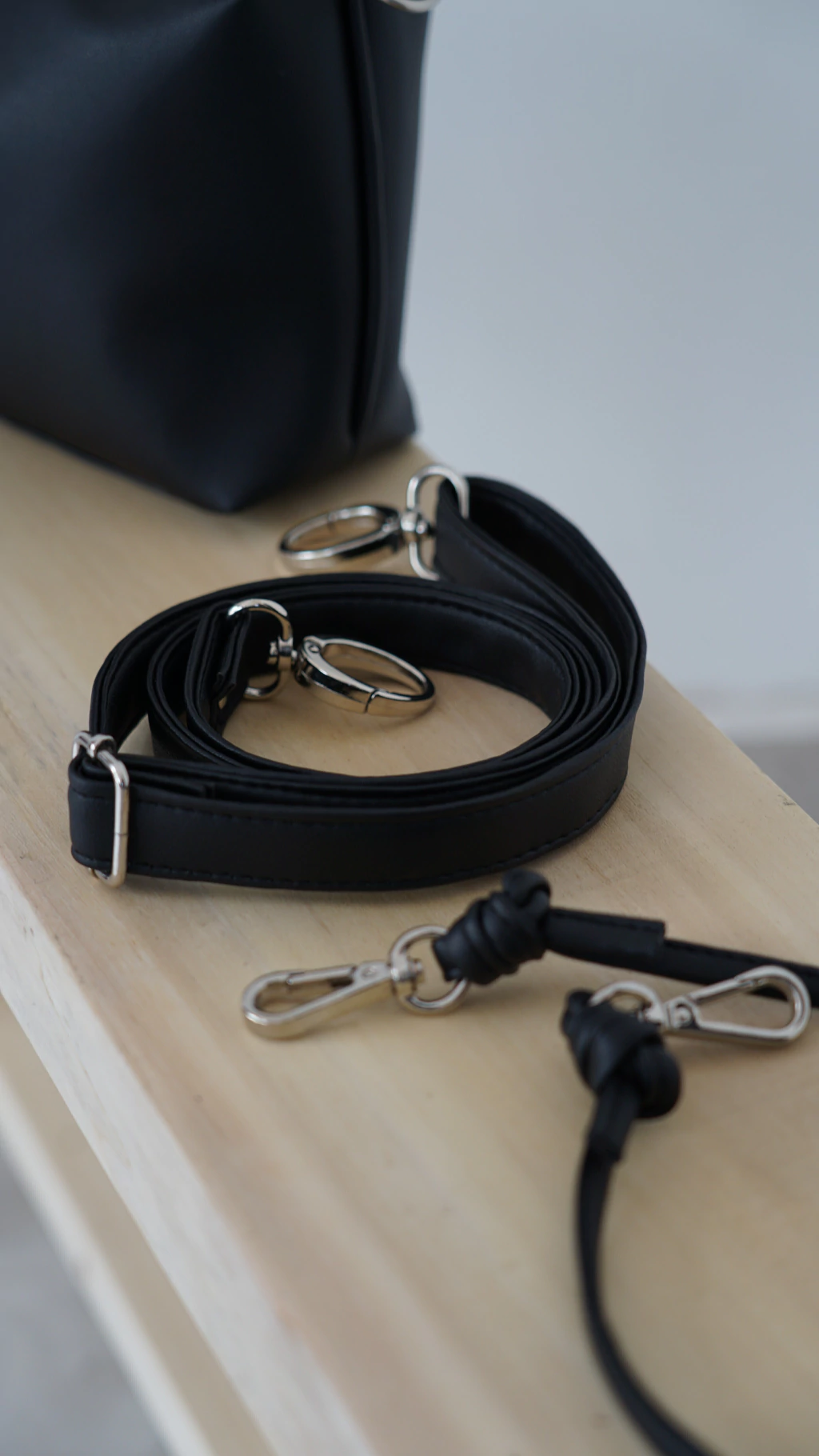 Correa corta de ecocuero. Correa larga regulable de ecocuero.